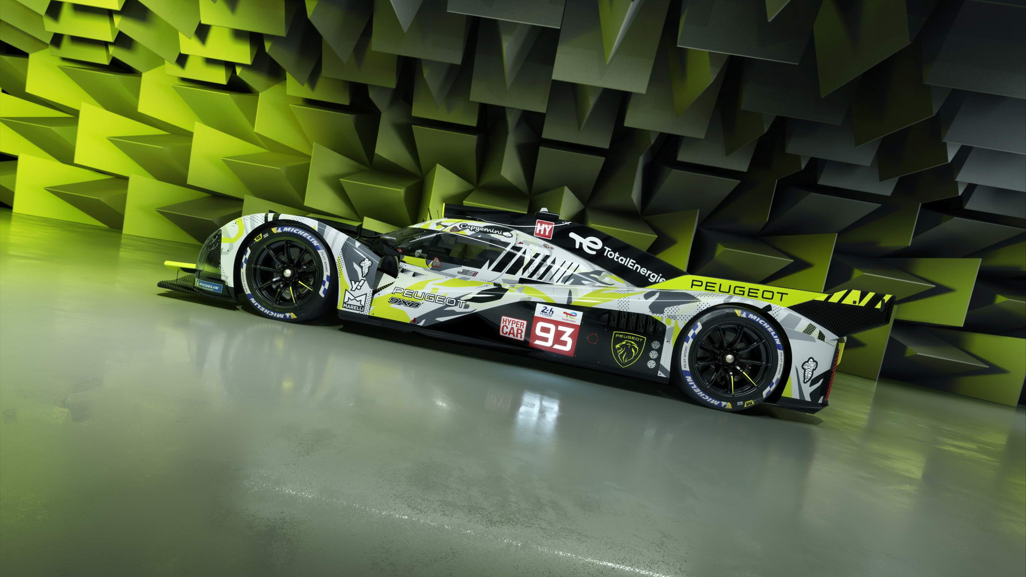 Az új, 2024-es modellévű 9X8-as nem csak festésében tér el az elődjétől, hanem abban is, hogy elöl és hátul már eltérő szélességű Michelin gumikon fut (elöl 29, hátul pedig 34 cm széles abroncsokat használ, mint az összes versenytársa), és a hátulján megjelent egy széles szárny is. Az eltérő abroncsméretek alkalmazása arra kényszerítette a Peugeot Sportot, hogy alaposan átdolgozza a 9X8 koncepcióját. Korábban az egyforma méretű gumik lehetővé tették a tökéletesen semleges, 50/50 százalékos első-hátsó súlyelosztást, hátsó szárnyra pedig azért nem volt szükség, mert az autó a leszorítóerejének nagy részét alulról, a padlólemezről generálta.