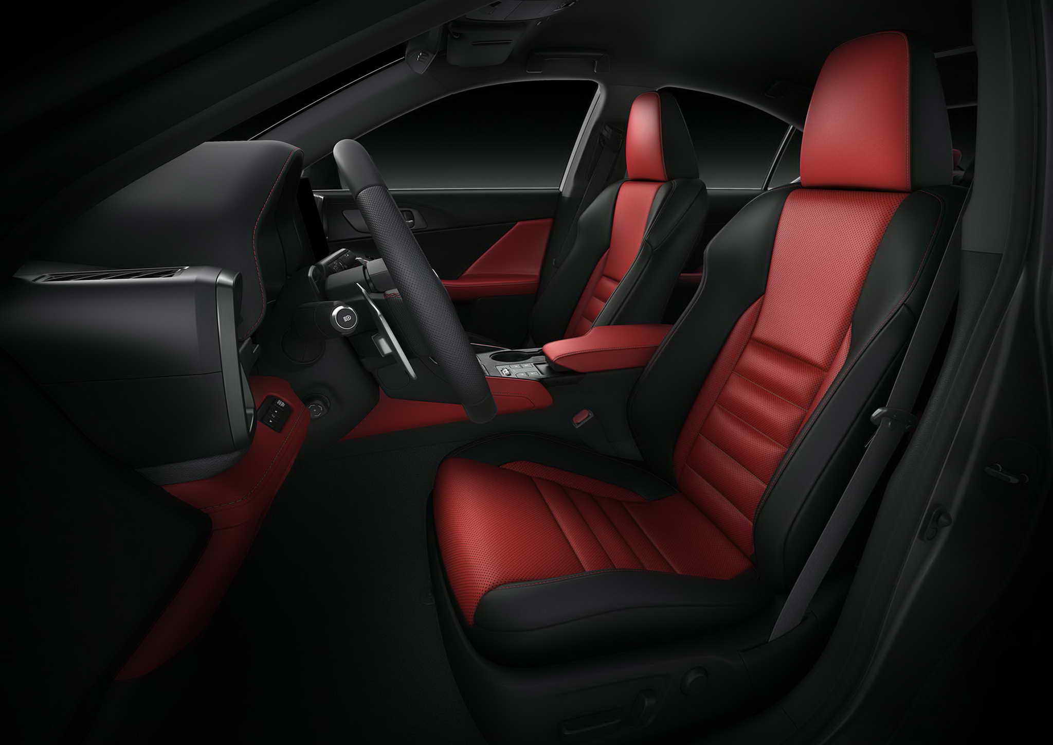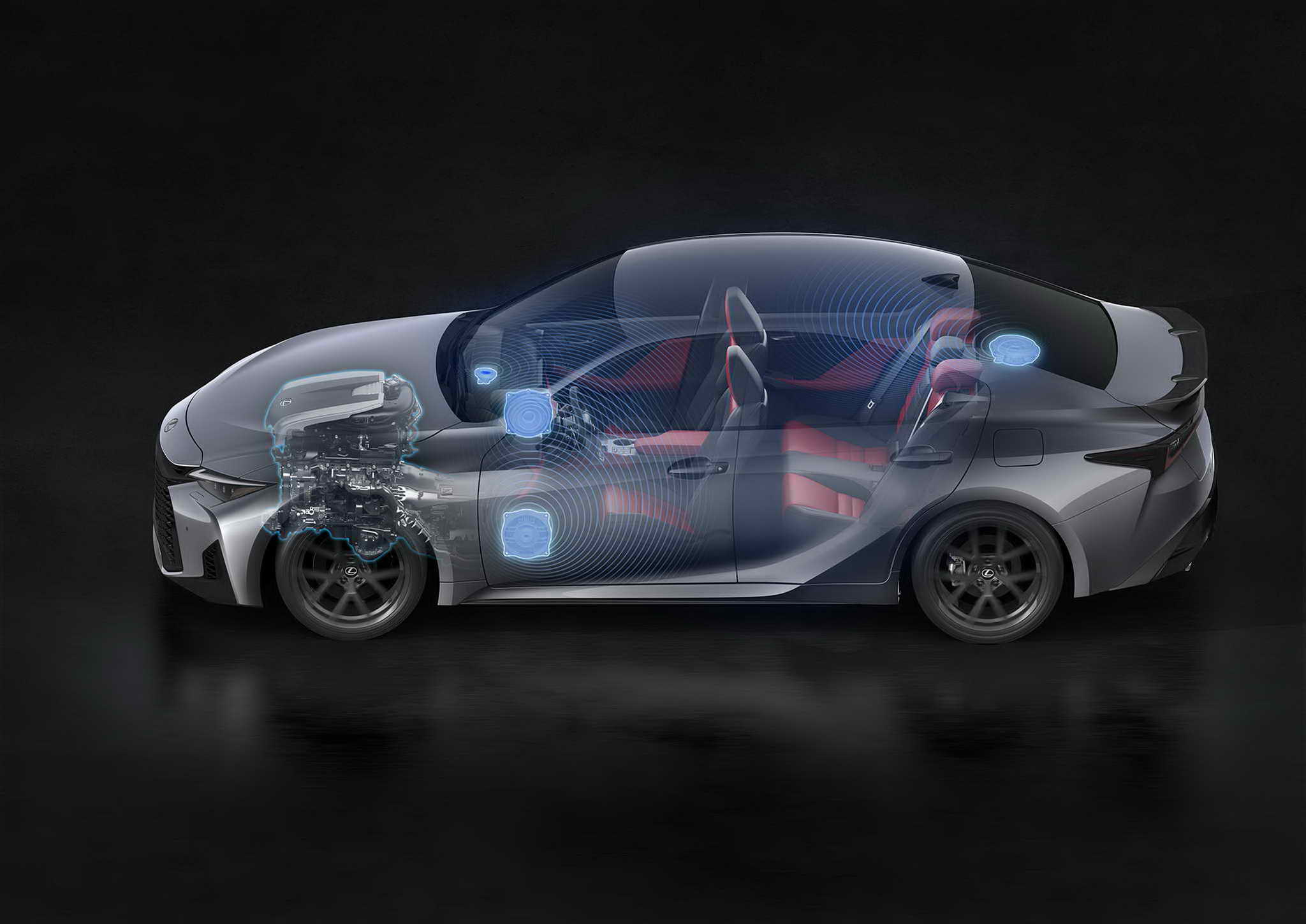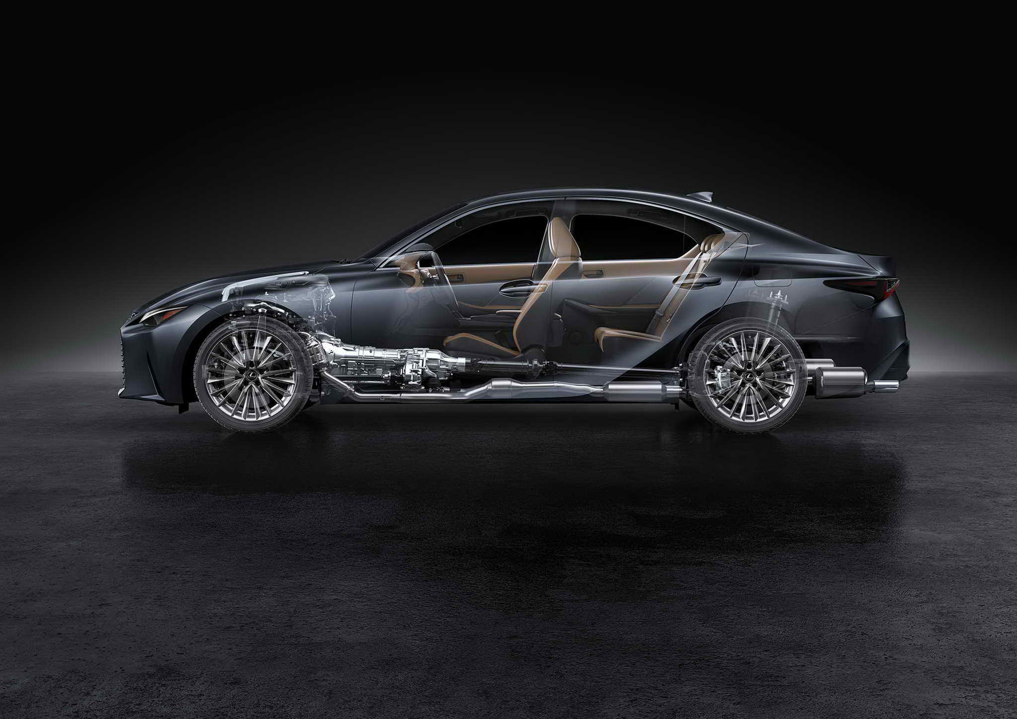 A belső tér átgondoltan lett kialakítva, a funkcionalitásra összpontosítva, ami alapvető tulajdonság egy kompakt FR sportszedán vezetőfülkéjében, olyan környezetet teremtve, amelyben a vezető teljes mértékben az útra koncentrál. A középső kijelző 12,3 hüvelykre nőtt, kiváló láthatóságot és intuitív kezelést biztosít, miközben a vezető természetes látóteréhez igazodik. A vezető előtti TFT LCD műszerfal szintén 12,3 hüvelykre nőtt, amely tiszta és könnyen leolvasható grafikákat jelenít meg, amelyek közvetlenül és intuitív módon közvetítik az információkat. A belső kialakítás terén az újonnan kifejlesztett „Kovácsolt Bambusz” díszítést alkalmazták a felső konzolon és az indítókapcsoló keretén. A természetes bambuszrostok jellegzetes „In-ei” árnyékolóhatást hoznak létre, amely megragadja az IS dinamikus energiáját, és fokozza az utastér sportos hangulatát. Az új belső szín, a napkitörések élénk fénye ihlette „Prominence” segít agresszív és sportos utastéri hangulatot teremteni. További finomítások közé tartozik a Lexus Safety System + kibővített funkciói, valamint az Advanced Drive [Lexus Teammate Advanced Drive *6]
