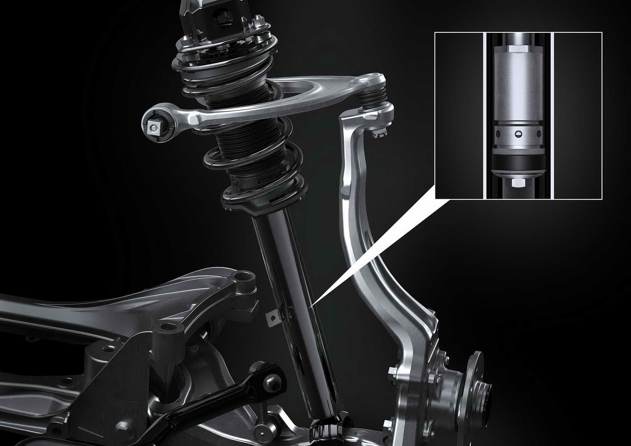 • A lineáris mágnesszelepes AVS (AVS) rendszernek köszönhetően, amely finom csillapítási erőszabályozással és gyors reagálással rendelkezik, a jármű fokozott stabilitást és csökkentett úttartást biztosít.