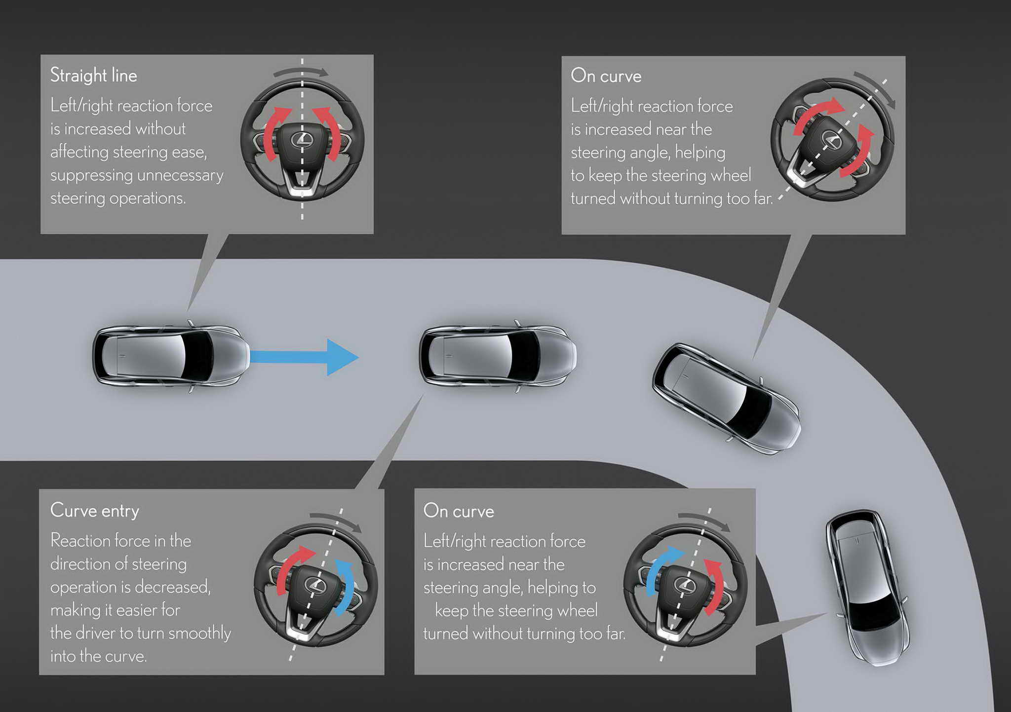 A vezetési teljesítmény terén a cél a kormányérzet és a jármű stabilitásának további finomítása volt. Az elektromos szervokormány (EPS *2 ) változó áttételű *3 kormányzást használ a kormányszög csökkentésére a kereszteződésekben és a egymást követő kanyarokban, javítva a kormányérzetet. Ezenkívül a lineáris szolenoid típusú AVS *4 alkalmazása magas szintű egyensúlyt ér el a jármű stabilitása és az útfelület rázkódásának csökkentése között, ami jobb vezetési kényelmet eredményez.