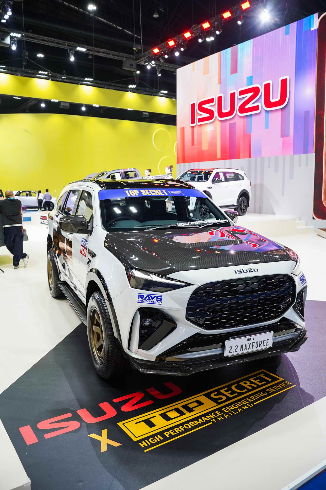 MU-X Top Secret SPL: A világ első „Top Secret PPV” projektje. Teljes karbon karosszéria-kit (Monza Gold), Profender futómű, HKS kipufogó és 230 LE feletti teljesítmény.
